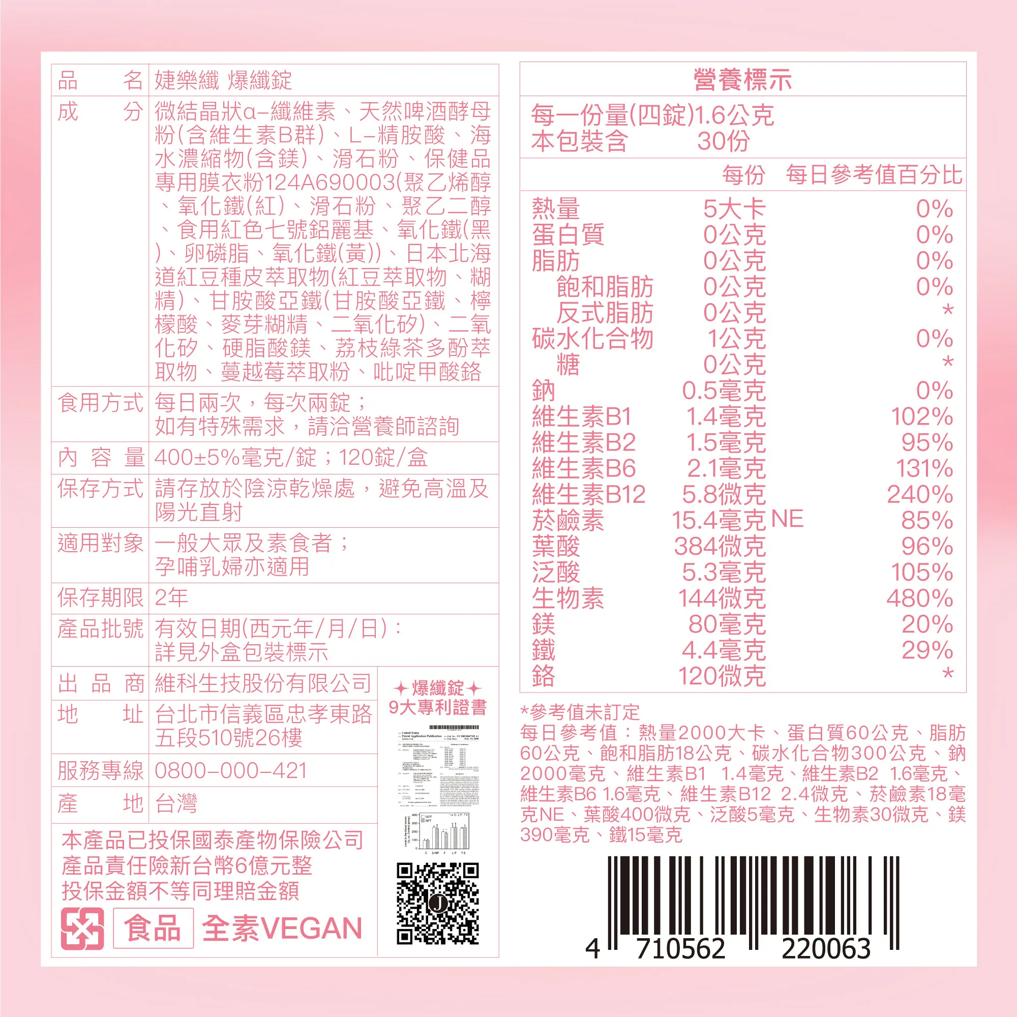 爆纖錠為全素,適用年齡4歲以上,懷孕、哺乳及生理期間均可使用,若有非上述提及之特殊情況,請先洽詢營養師之後再行食用。